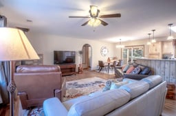 Escape to your own private retreat in the forest—this beautifully finished mountain home offers the perfect balance of cozy rustic character and contemporary convenience. The kitchen flows seamlessly into the dining area and spacious living room. A rock-wall fireplace with a heavy timber mantel serves as the centerpiece of the home, creating a perfect gathering place for chilly mountain evenings. Natural wood accents, built-ins, and a spiral staircase contribute to the cozy cabin feel. An elevated walkway overlooks the living area, giving the home a sense of openness and connection between levels. Warm wood tones and rustic railings amplify the lodge-style design. Step outside onto the expansive wraparound deck and immerse yourself in nature. With abundant tree cover and views in every direction, the space is ideal for outdoor dining, relaxing, or stargazing on clear mountain nights. Surrounded by towering pines and situated on a spacious wooded lot, this property provides tranquility, privacy, and true mountain-living ambiance.